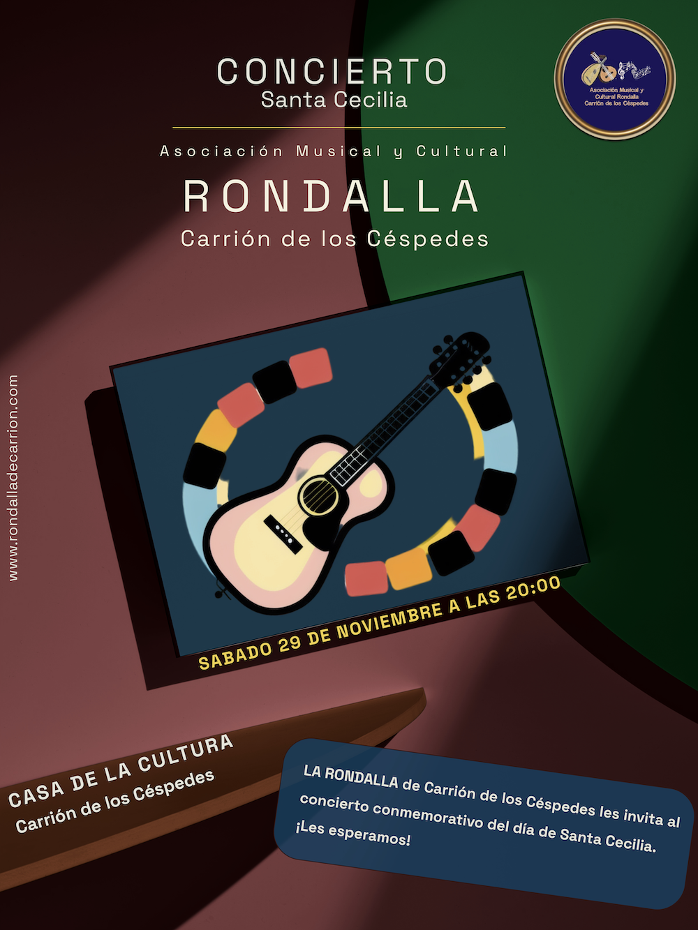 El pasado 29 de noviembre, realizamos un pequeño concierto para nuestros vecinos y amigos en la casa de la cultura con motivo de la celebración de la festividad de Santa Cecilia, patrona de la música.