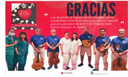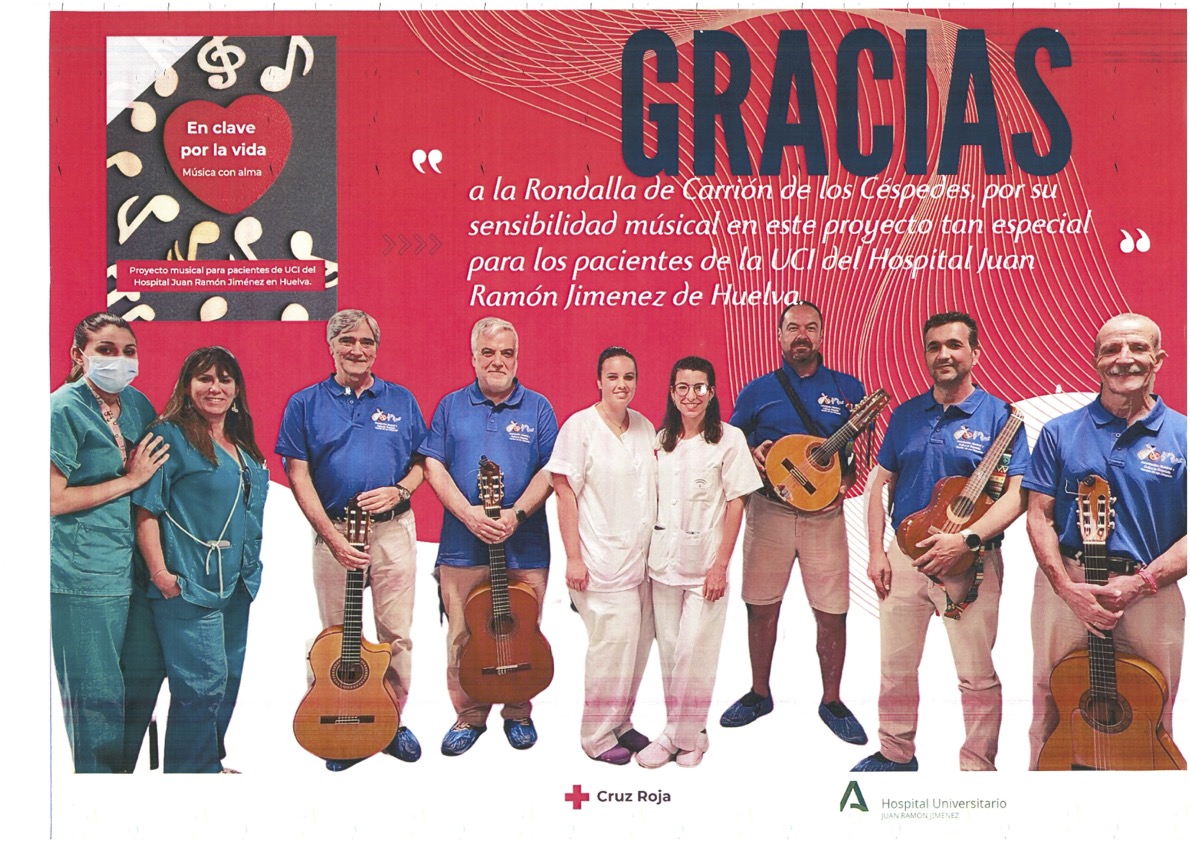 El pasado día 13 de junio estuvimos tocando algunas canciones en el Hospital Juan Ramón Jiménez de Huelva con motivo de la iniciativa de la Cruz Roja "EN CLAVE POR LA VIDA", un proyecto musical para pacientes de la UCI del Hospital Juan Ramón Jiménez".